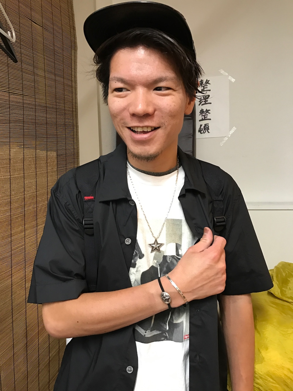 筋巻き筋男のネックレスを使ったコーディネート