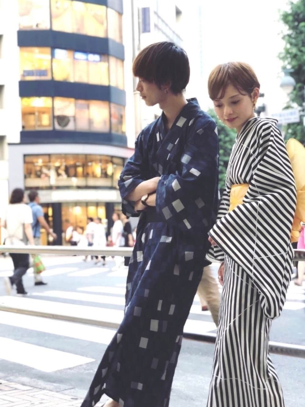 Kazumaの浴衣「メンズ市松柄浴衣」を使ったコーディネート