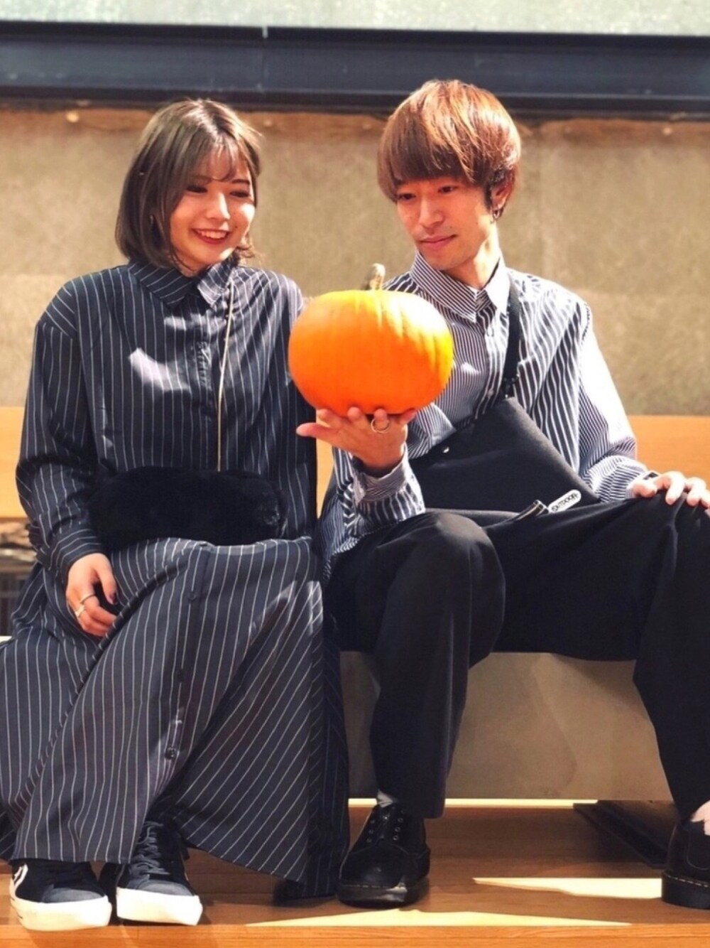 こんにちわ! ストライプでリンクコーデ😊 koe渋谷店では少し早いですが ハロウィンに向けカボチャが店内に🙄 気になる方は是非遊びに来て下さい! ではまたの投稿で✋🏻 皆様いつもいいね&お気に入り ありがとうございます🙇♂️🙇♂️🙇♂️