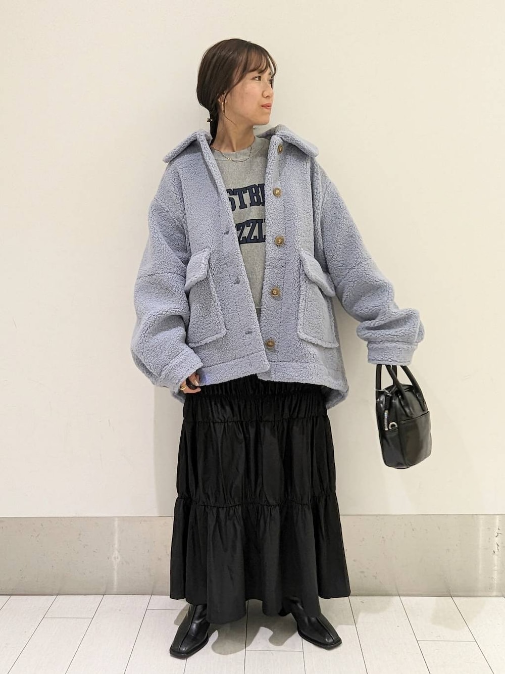 ○アウター 軽くて暖かいアウターなので 真冬に持っていきたいアイテムです♪ 中もゆったり着れるので厚手のトップスも 重ねやすいです!! 襟が取り外せるのでノーカラーでも着れます!! ○スカート シャーリングデザインが ポイントのスカートです!! ゴムになっているので動きやすく穿きやすい アイテムです♪ 光沢感があるので、ニットやスウェットで 合わせてメリハリのあるコーデが出来ます!!