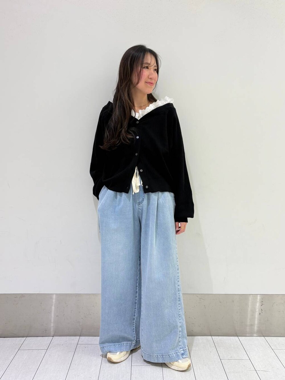 ○トップス レースフリルがポイントの カーディガンです!! 柔らかい素材で着心地がいいカーディガンです!! ○ボトムス ウエストがゴムになっていて楽にはけます!! ギャザーが入っているので 腰回りを体型カバーしてくれるデザインです!! 軽さのあるパンツなのでストレスなく穿けます♩