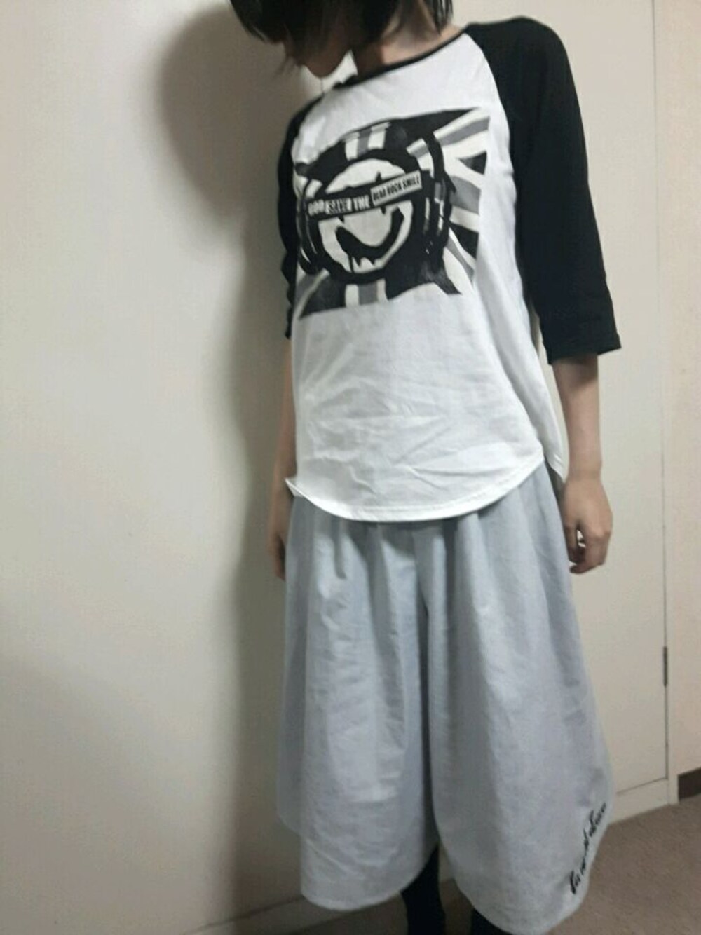 暖かい日は7分袖のTシャツで。 またモノトーンコーデです。