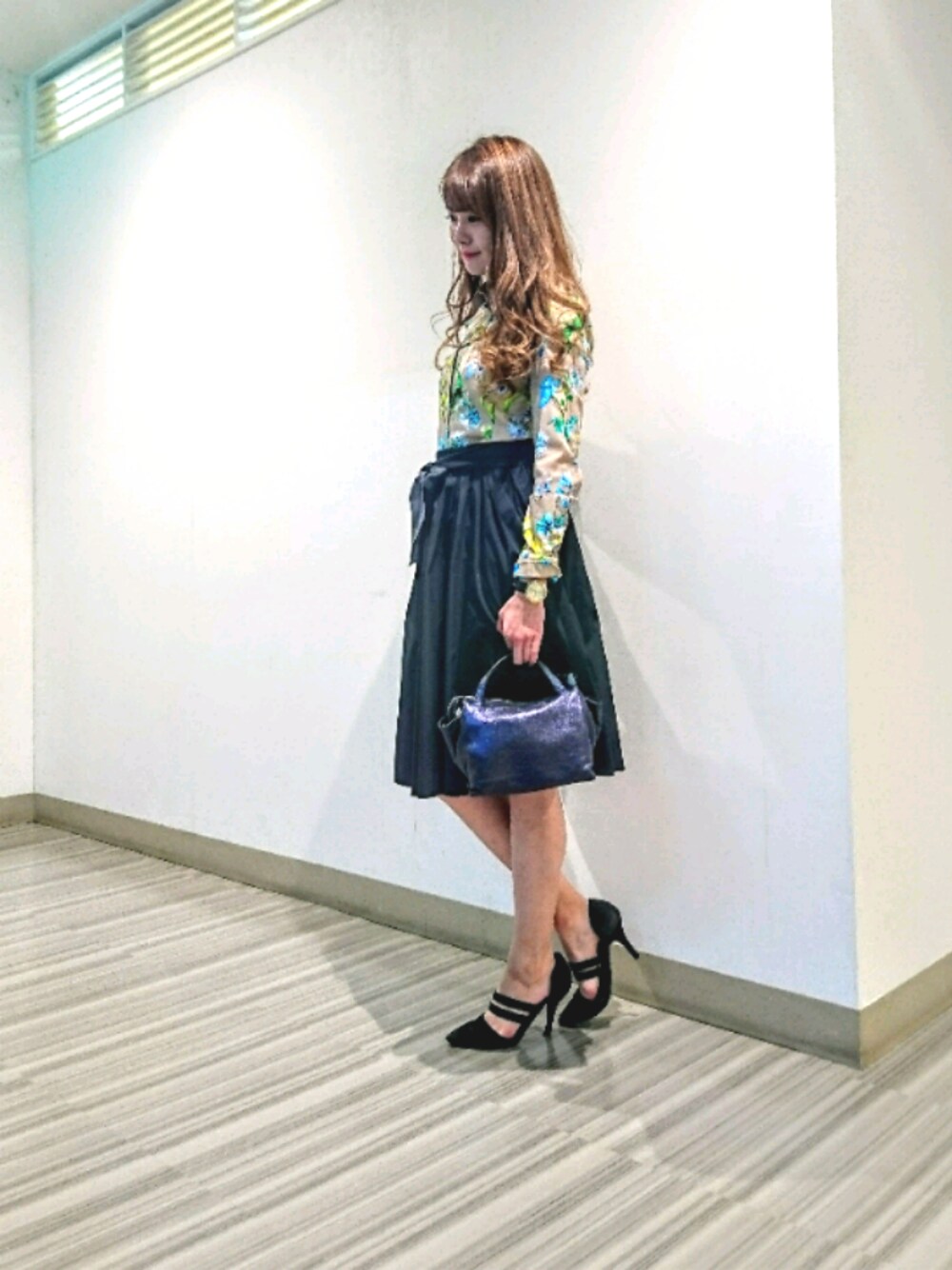 新作の花柄シャツ。無地のスカートに合わせると綺麗な柄が映えます。 シャツ10-81-01-010 スカート30-81-08-904