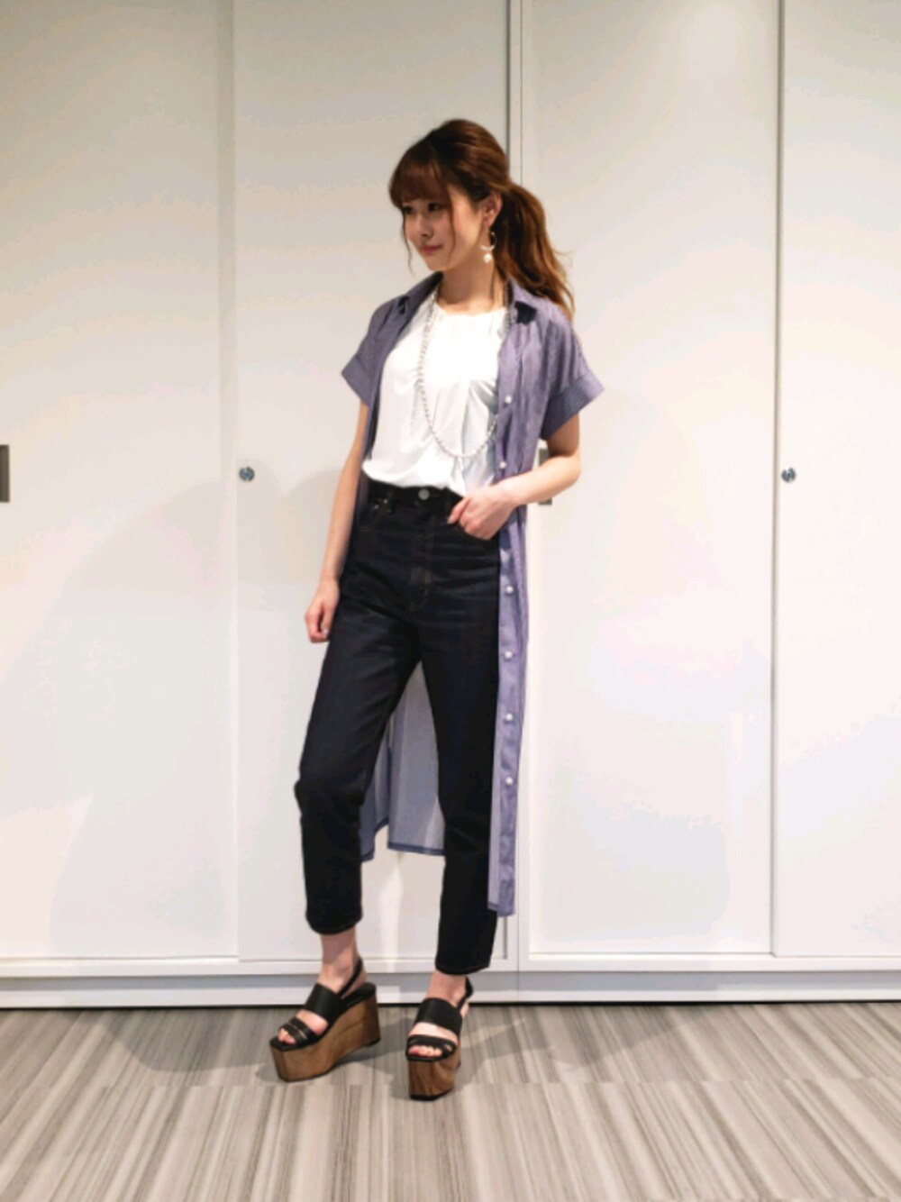 KUBOのシャツワンピース「ストライプジャージーシャツワンピース」を使ったコーディネート