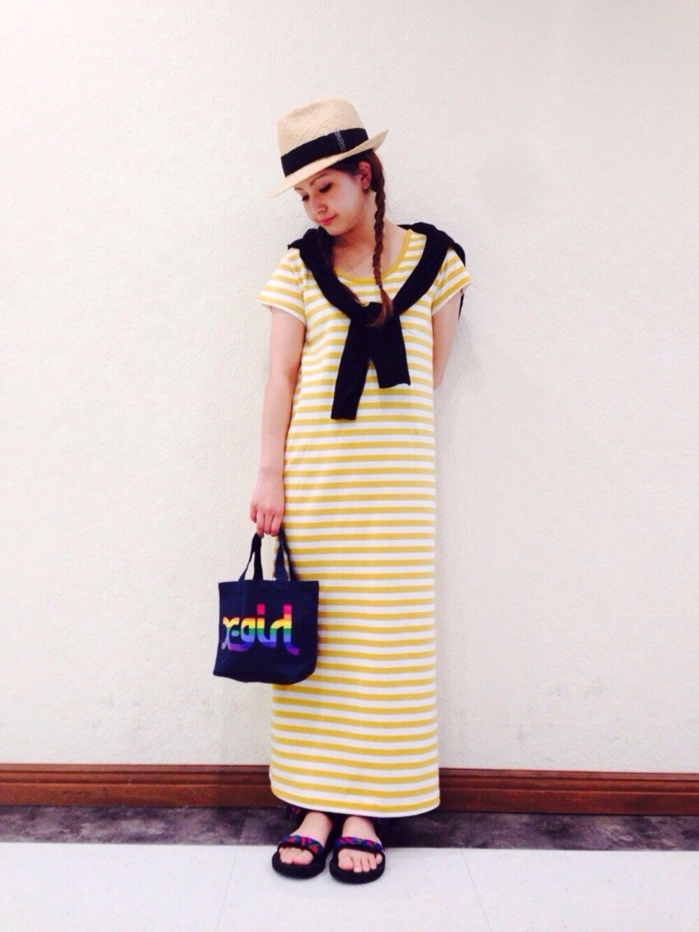 chikaのワンピース「BASIC BORDER MAXI DRESS」を使ったコーディネート