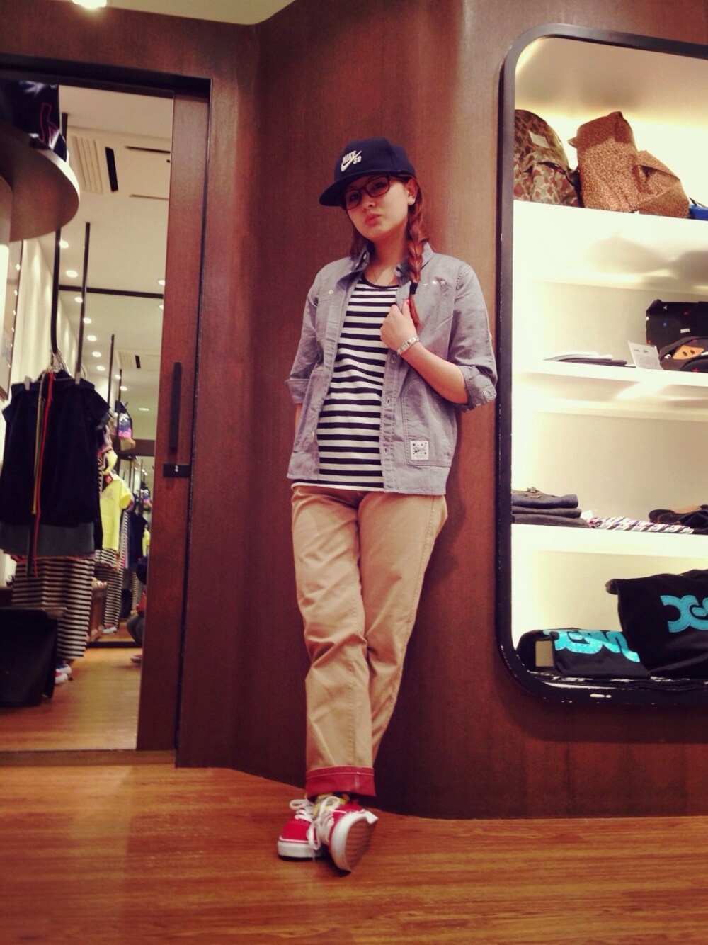 ベージュのチノとボーダーの組み合わせ好き♡ ミロードBlog毎日更新してます♡