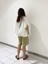 ピンタックバタフライスリーブブラウスと ハーフパンツを合わせてラフに着てみました🎣 さらっと軽い着心地で、体型カバーもできる 優れものです🙆♀️✨