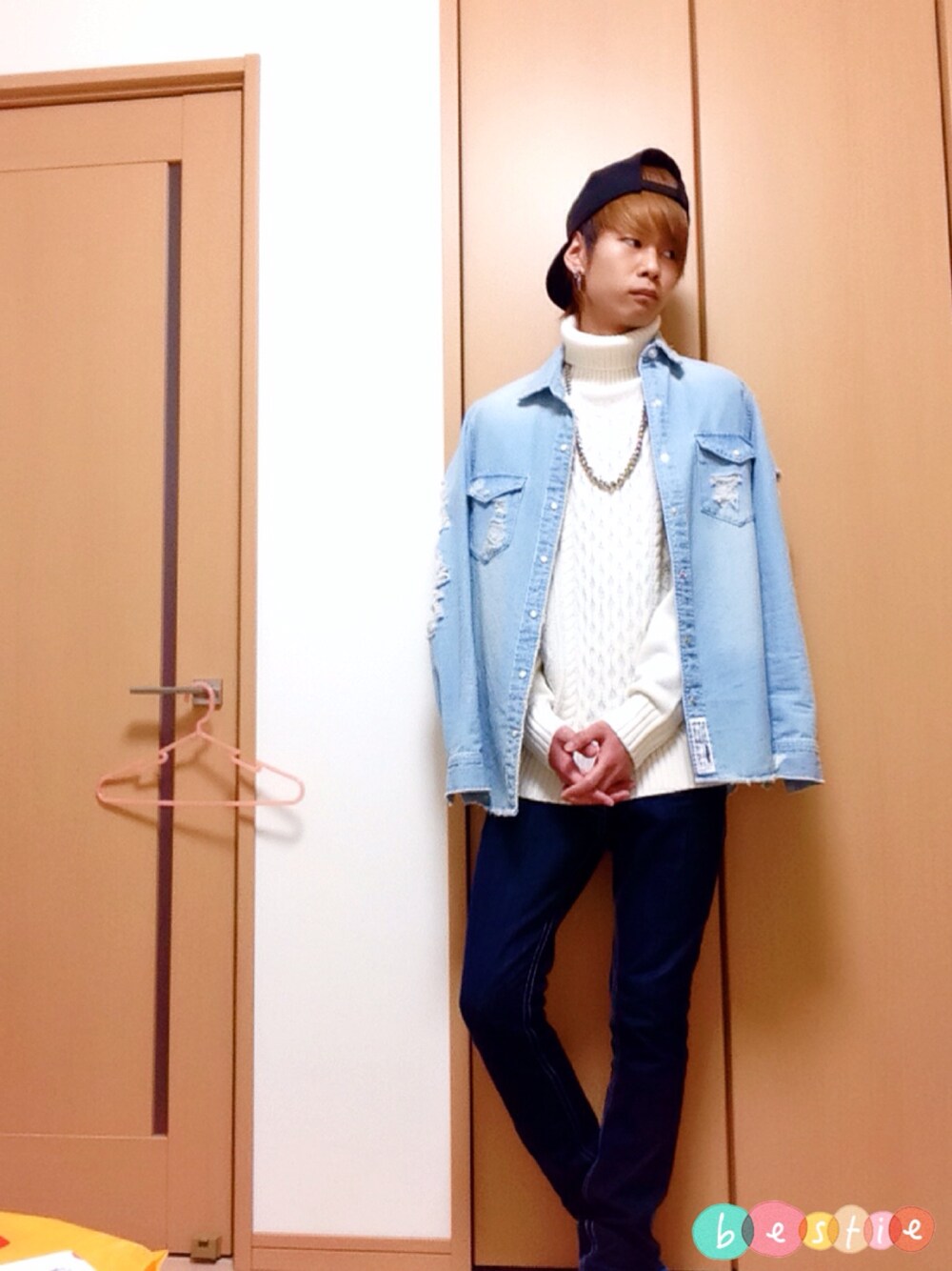 今日は雨やのにめっちゃあったかくて冬用のアウターなしでもぜんぜんいけちゃいますね〜。やっと春がきたようで|・ω・`) LGENDAのデニムシャツは袖などにもけっこう激しめのダメージ加工がされていてめちゃめちゃかわいいんですよ( ◜◡^)あんまり見かけないんで他とも被らないしお気に入りです! あ、キャップはやっぱりスナップバックに限りますね。笑