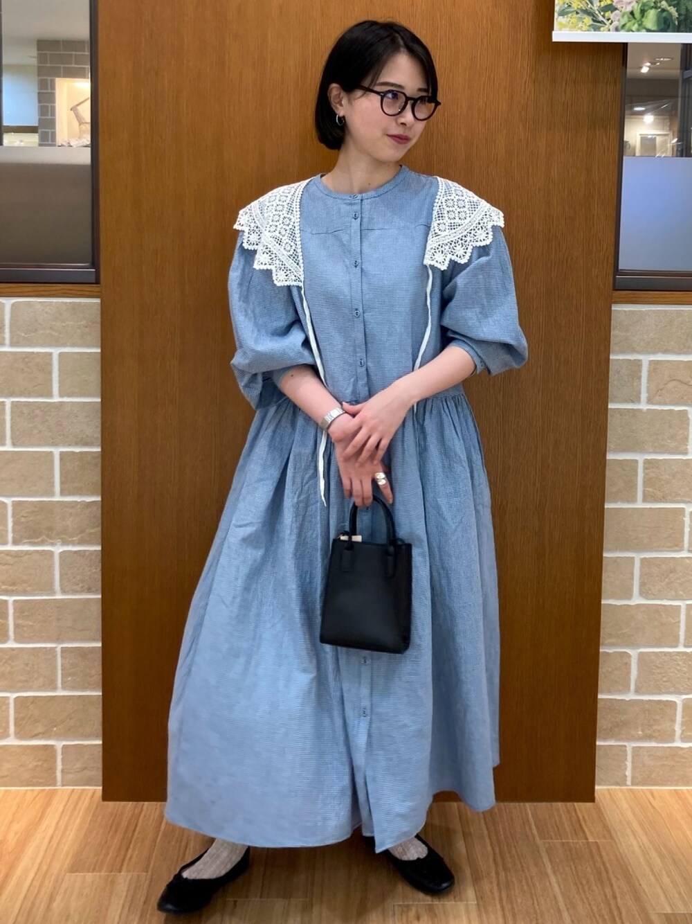 こんにちわ!さわいです! ギンガムチェックのワンピースを着てみました✨✨ お袖をわざと捲ってたっぷりさせてみました😳 付け襟はわざと縛らずかけてるだけでも抜群のかわいさ🐥💕