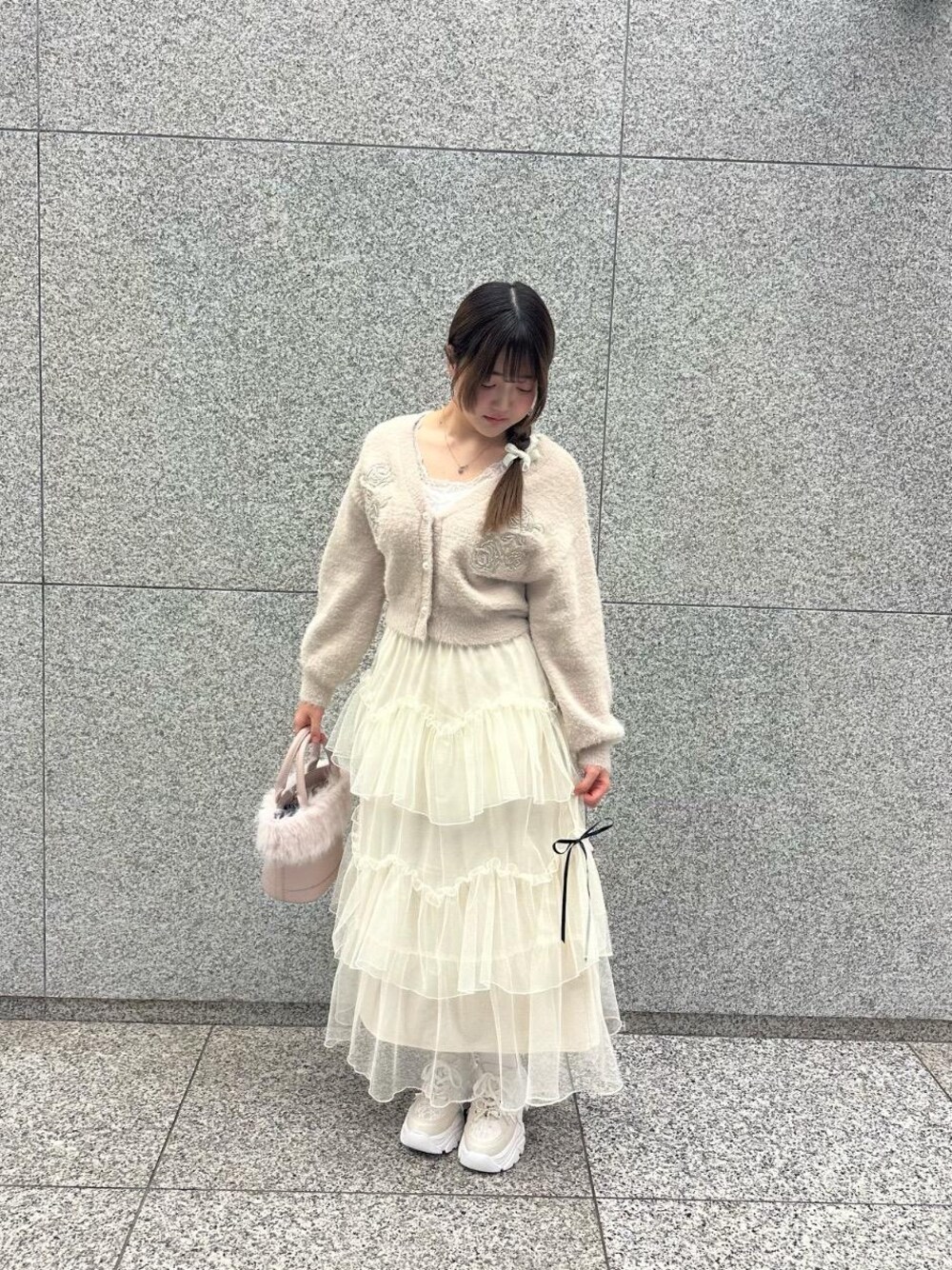 チュールスカートがふわふわでめちゃくちゃかわいくガーリーに着こなせます💞スニーカーも履き疲れなくてとても可愛いしカラバリもあります🖤🤍🩷