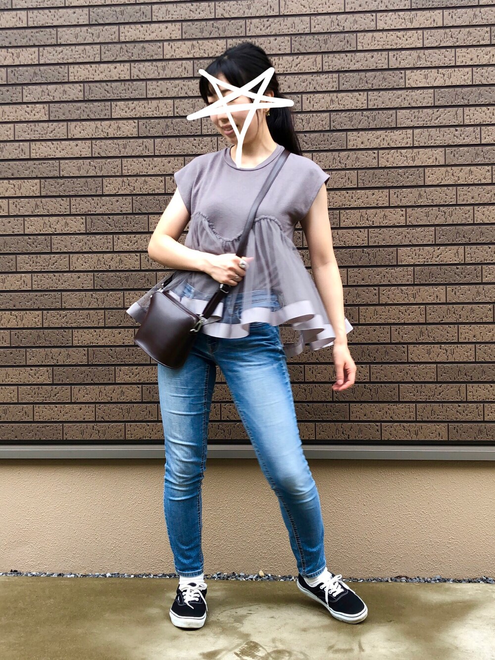 kcoのTシャツ/カットソー「なみなみギャザーチュール立体シルエットヘムグログランリボンテープフレンチスリーブ変形フレアTシャツカットソー」を使ったコーディネート