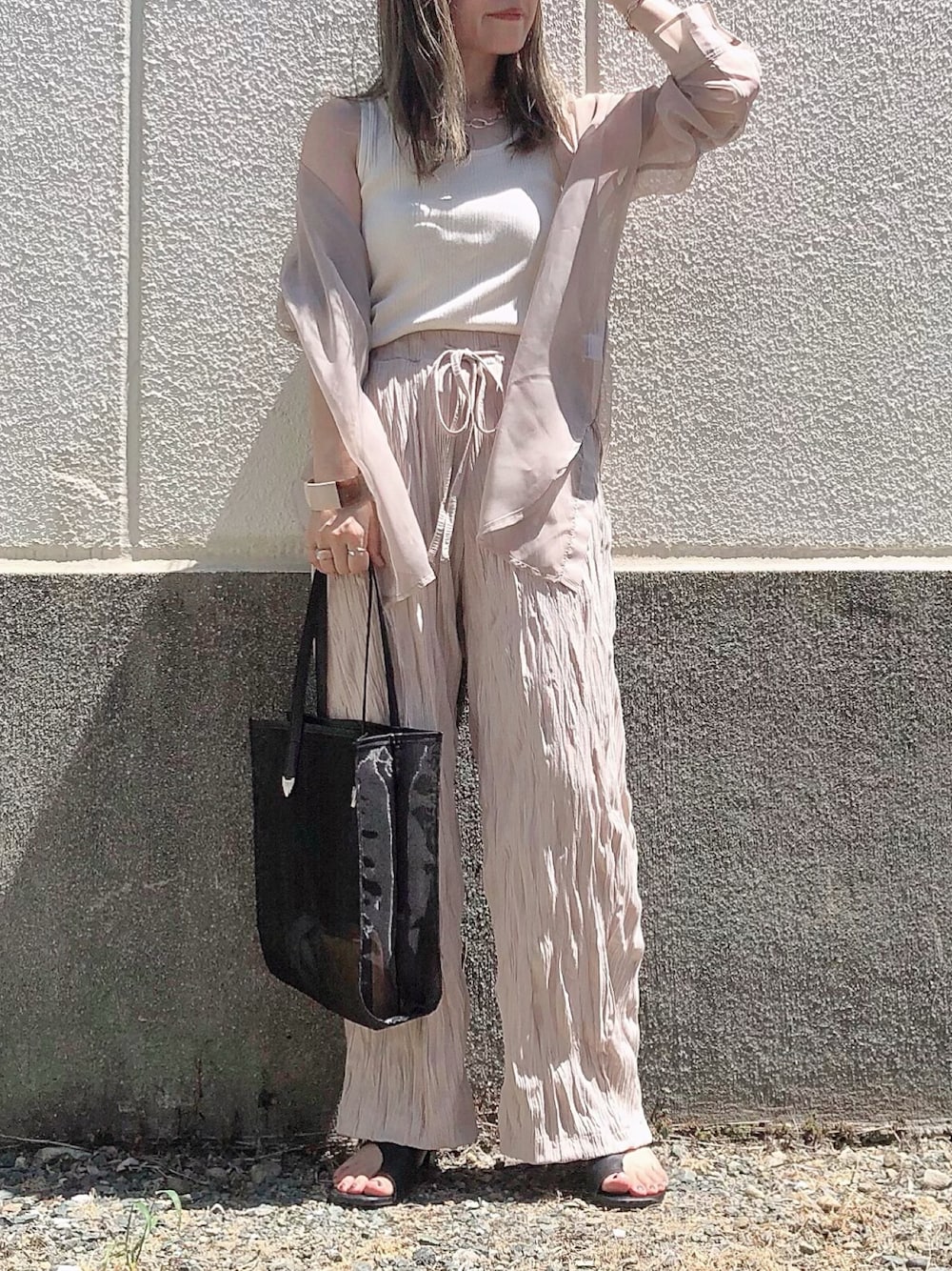 ワントーンに小物は黒🌚 ユニクロのリブタンクが優秀すぎる🥺✨✨ Instagram☞kco3211