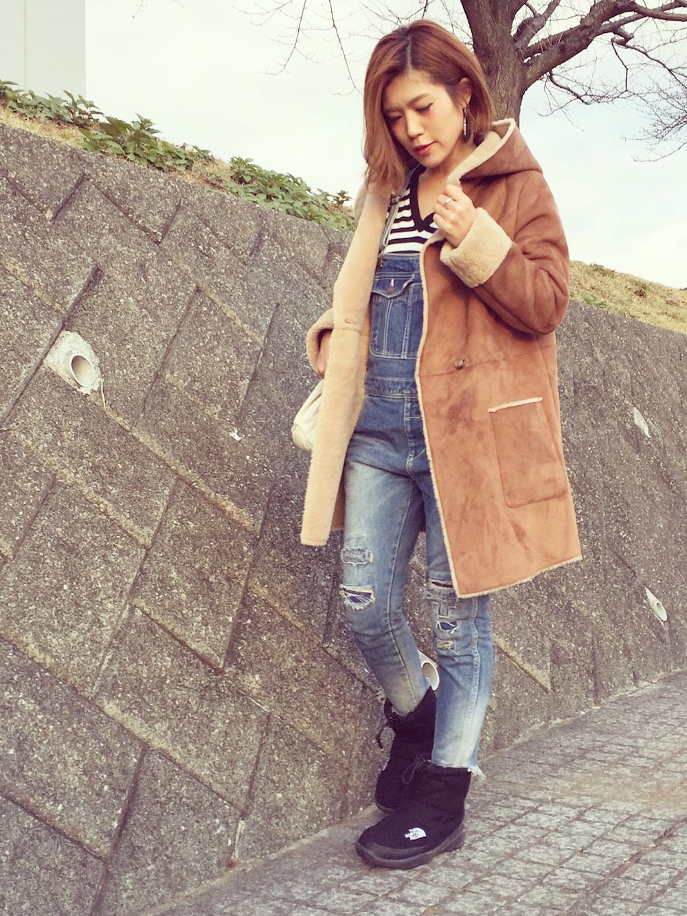 2015.12.20♡¨̮ 久々サロペ着たかも! 今日は寒い所へ行くから🆕ヌプシで。 暖か🔥 Instagram→kco3211