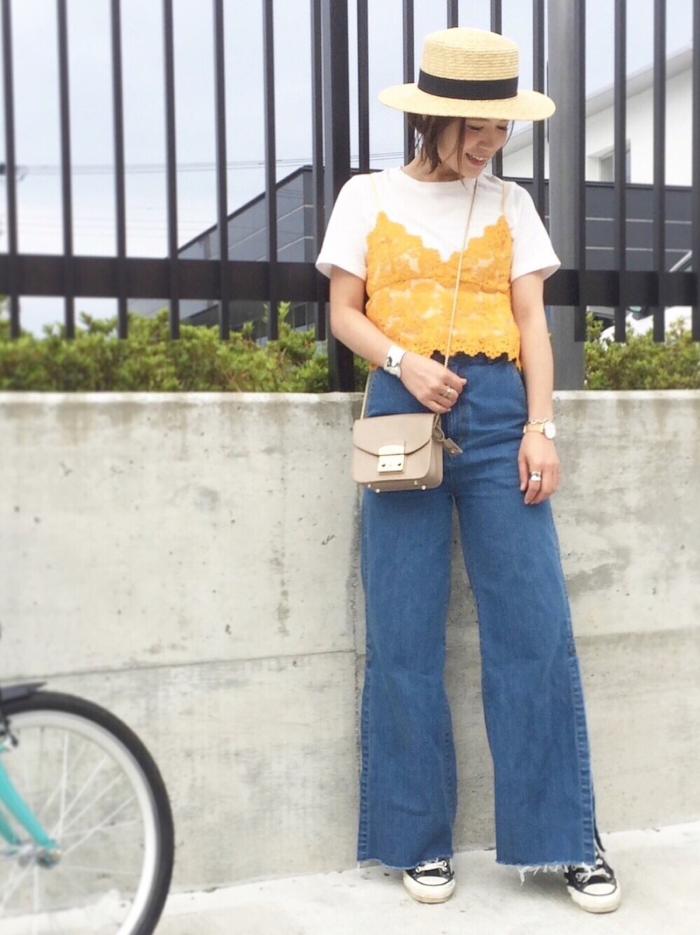 山吹色レースをレイヤード💛 ここら辺じゃ浮く🤢 Instagram☞kco3211