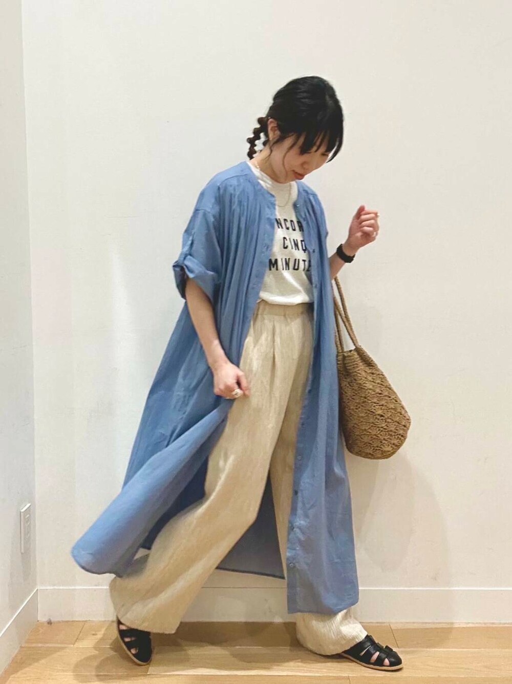 肌触りのいいコットンボイルのワンピースを羽織りとしてスタイリングしました! 袖はロールアップできるデザインになっています。 もちろんワンピースとしても可愛い1枚。 ポケット付きなのが何気に便利です! パンツはリラックス感があり、とてもサラッとしているので夏の暑い日にも活躍してくれそう🙆♀️ DOORSで初夏の準備を始めましょう☺️