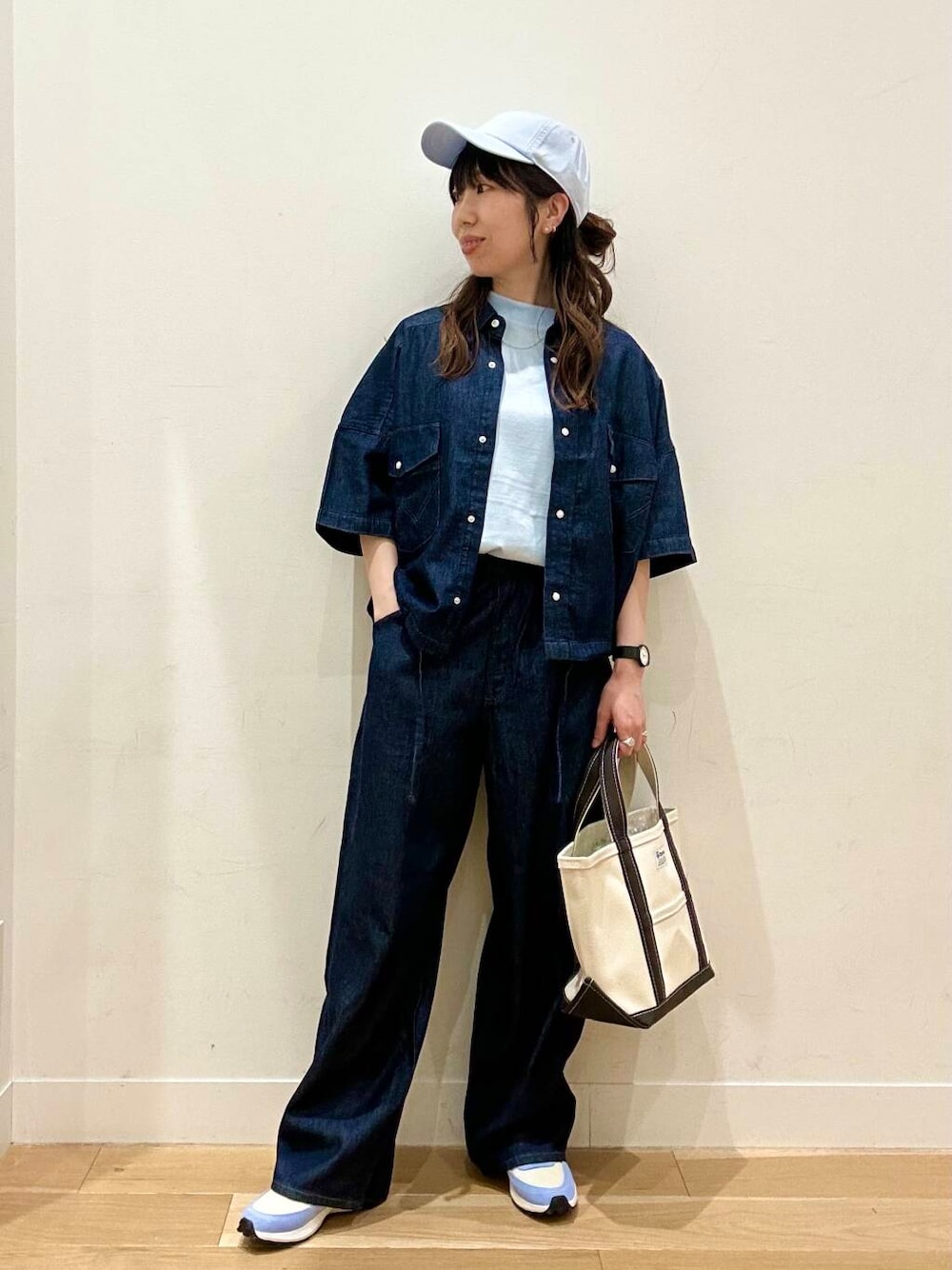 Wrangler×EKALの別注アイテムでセットアップコーデ! 柔らかくてとっても着やすいデニムです👖 シャツのボタンは開けても閉めても🙆♀️ オーバーサイズな感じがカッコいいです✨ ワンウォッシュの濃い色には明るめのインナーや小物でバランスよく! 写真だと分かりづらいですがライトブルーで合わせてみました🩵 セットアップって気分上がります!🤭 ぜひ店頭でお試しください♪