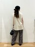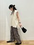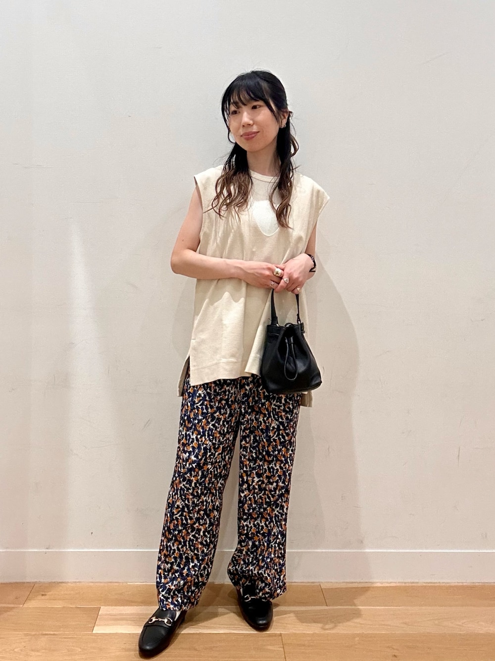 まだまだ暑いので、セールアイテムでノースリーブコーデ! フラワープリントのパンツはとてもサラッとしていてとっても涼しいです。 柄がアクセントになるので、トップスがシンプルでもサマになる✨ ジャガードベストで少しだけ秋の気配を漂わせてみました🍂