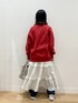 THE FOXのメンズスウェット🦊 今年はREDが登場です🔴 足元のデニムをチラ見せしたくて、レースのスカートはウエストでひと折りしております! 秋冬アイテムをゲットすると、涼しくなるのが楽しみになりますね😊