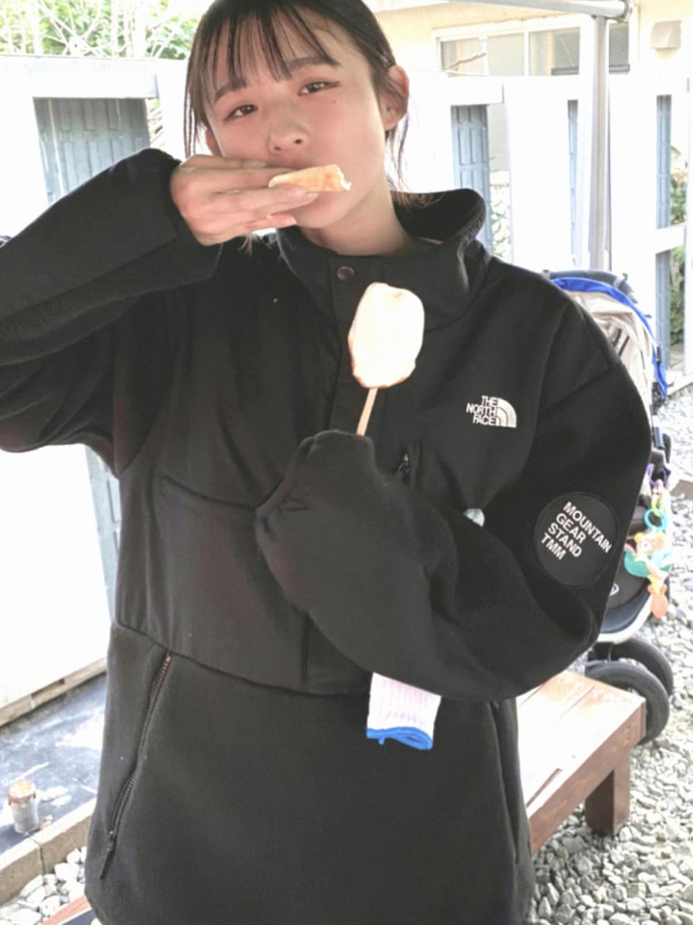 トマムオリジナルノースフェイスブルゾン♥ オーバーサイズが可愛い♥男女兼用 星野リゾートトマム内で購入♪ 姪っ子♥着てみました♪ 姪っ子→TikTokで人気上昇中♪ (ユーザ名・りりこ・1.0M再生♡)