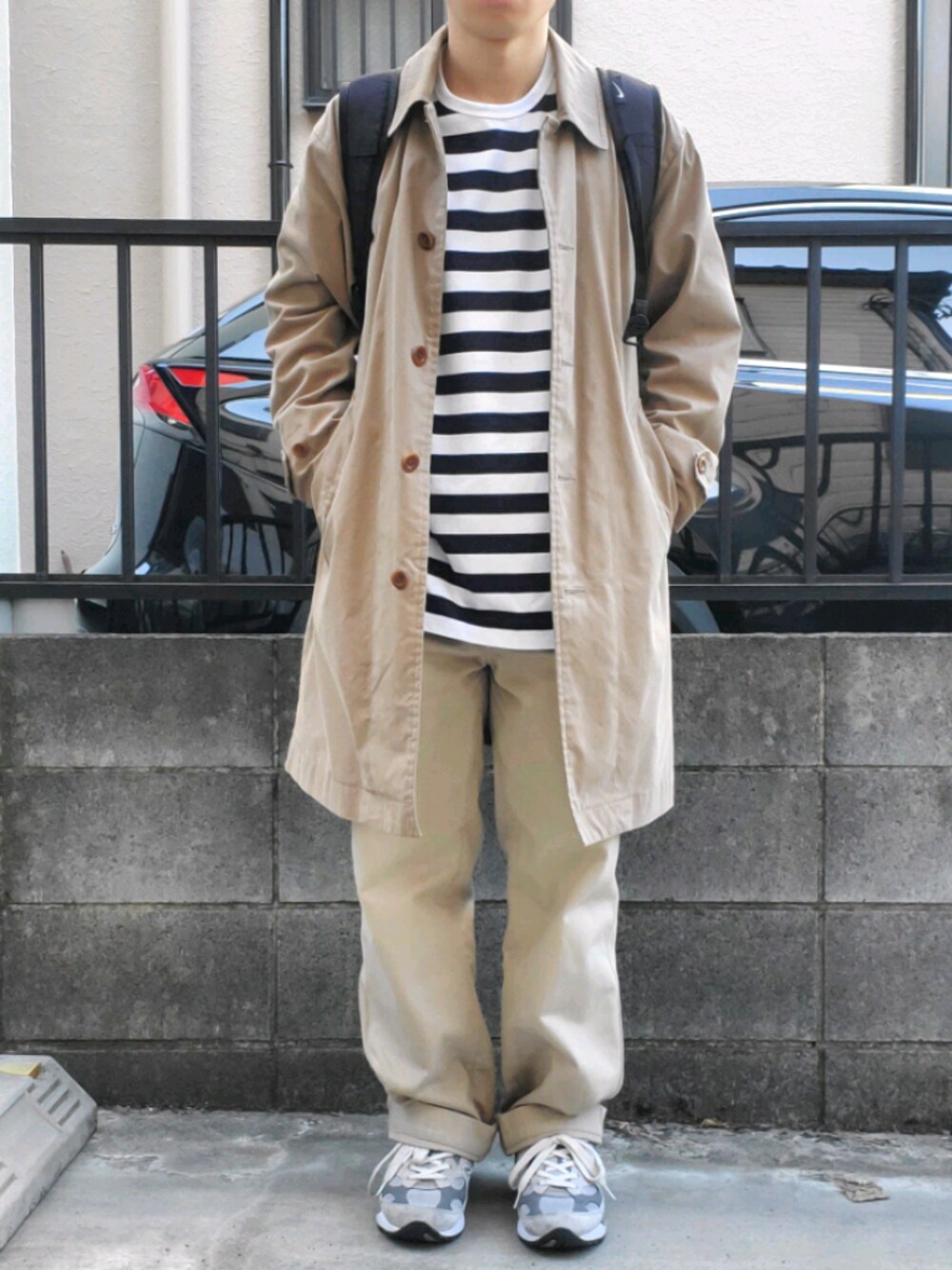takahiroのステンカラーコート「COTTON NYLON CANVAS」を使ったコーディネート
