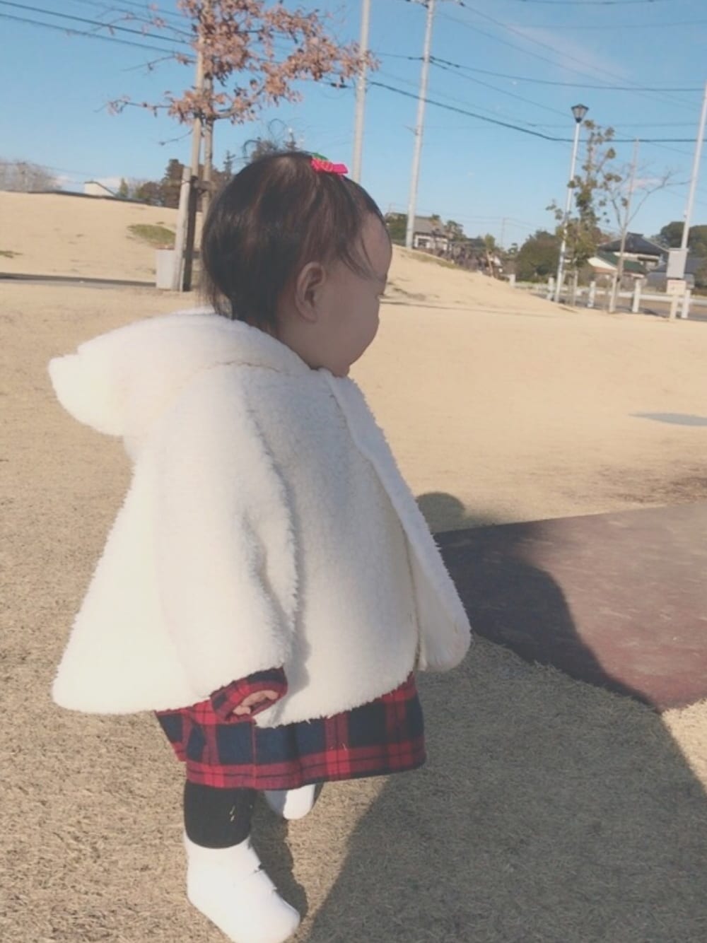 来年も着せようと思っていたポンチョ。 思いの外よごれや芝がつきやすくて 白を選んだことをちょっと後悔 😢 クリーニングかな〜 無印のチュニックは90なのでワンピースみたい ☻ 見てくださりありがとうございます *