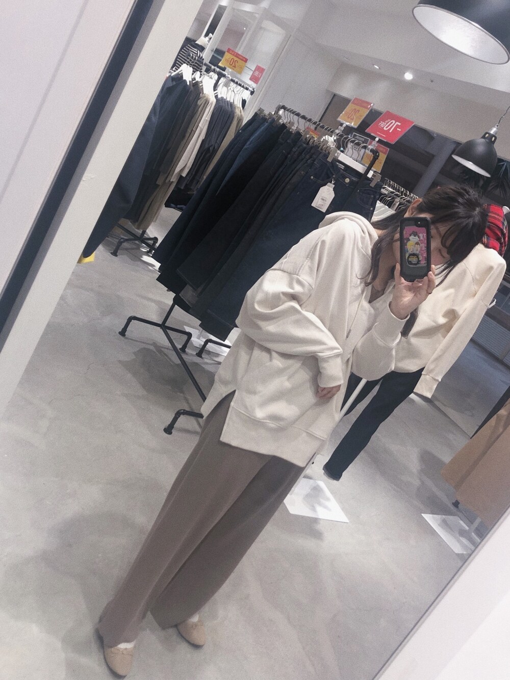 キーネックのパーカーはインナーのレースを見せると女性らしく着こなせます☺︎ ロンTを重ねてカジュアルも可愛いです!