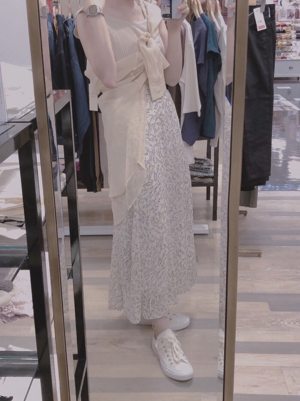 ワントーンコーデです🎋 シアーシャツたすき掛けしました⚡️