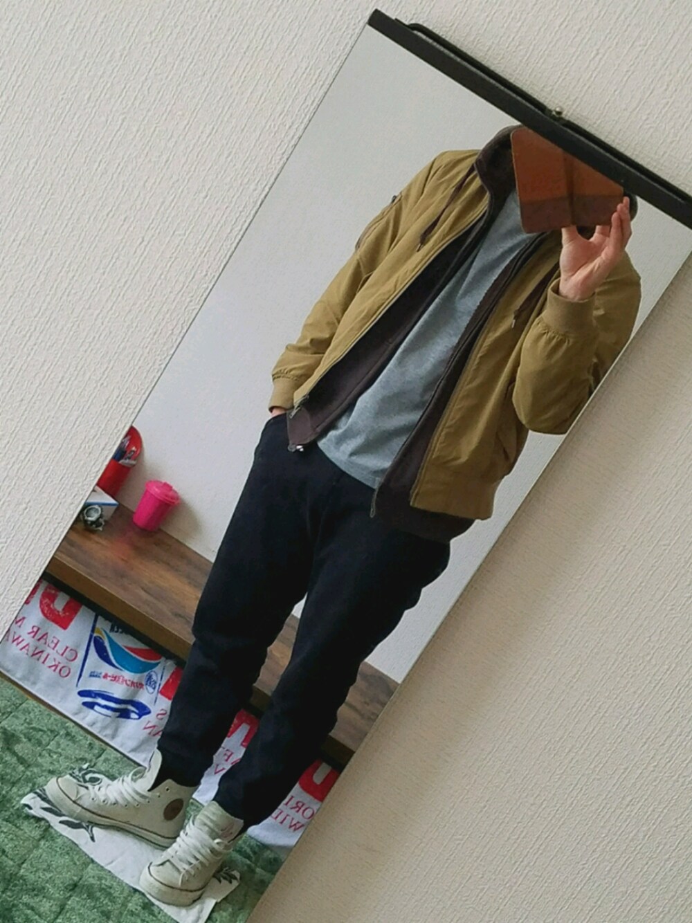 最近暖かくなったと思ったら、また寒くなりやがった… 風も強いし嫌になっちゃう( ˙꒳˙ ) 今日はUNIQLO成分多めなコーデ。 ブルゾンのベージュ+ブラウンのボアジャージかな? 同系色にまとめて中は灰色のNORTHFACEのTシャツ パンツは寒かったので厚手のスウェットパンツ、名前忘れたけどとても暖かくて動きやすい 靴にはお気に入りのCONVERSE! デニム生地にレザーパッチが付いてて本当に可愛い なかなか再販してくれなくてね… 再販して欲しい1品ですね 来週の月曜にテストだから、今日含め土日で勉強漬けや… 今日はここまで!! 見てくれてありがとうございます! ジャケット M ボアジャケット M Tシャツ M パンツ S 靴 27.0 フォロー いいねも ありがとうございます!
