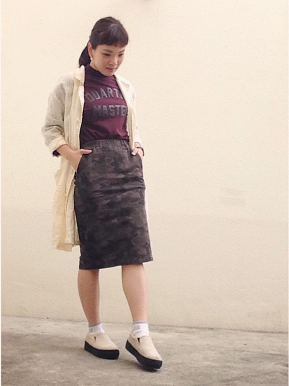 最近は、仕事も遊びも充実しすぎてて ただただ毎日楽しすです\(^o^)/🌟 でも、もう10月って思うとほんと早い。。 1年ってあっという間!!! 20代は一瞬っていうし、ちゃんと思い出いっぱい作るどーー\\\\٩( 'ω' )و //// さてと!最近暑いんだか寒いんだか! 晴れの日は普通にあつい🌞 いろいろ使える羽織もの欲しい〜物欲〜 THE 秋色 のボルドーだいすき👕☆ カモフラのスカートと合わせて、ちょっとだけ大人っぽくしてみました♡にや