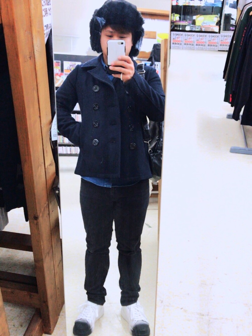アウター、シャツ、パンツは古着屋で見つけました〜😆✨ 中でもアウターはサイズ感がちょうど良くてとても気に入ってます!*(^o^)/*