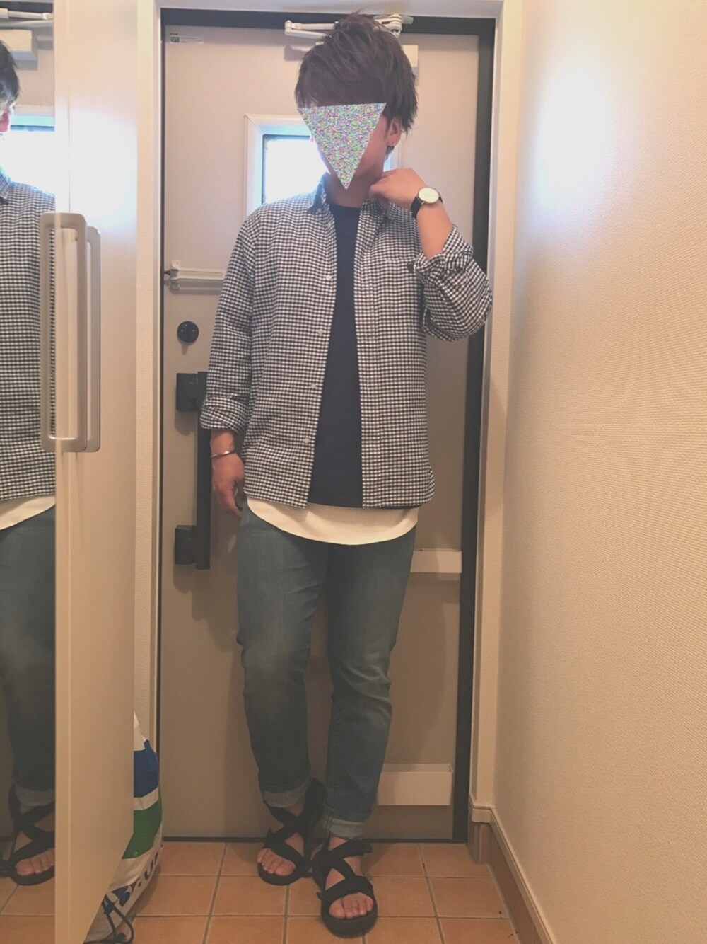 お久しぶりの投稿✨ 花見に行って来ました☺️🌸 《サイズ》 チェックシャツ [L] Tシャツ [L] ロングタンクトップ [L] デニム [32㌅] サンダル [L]
