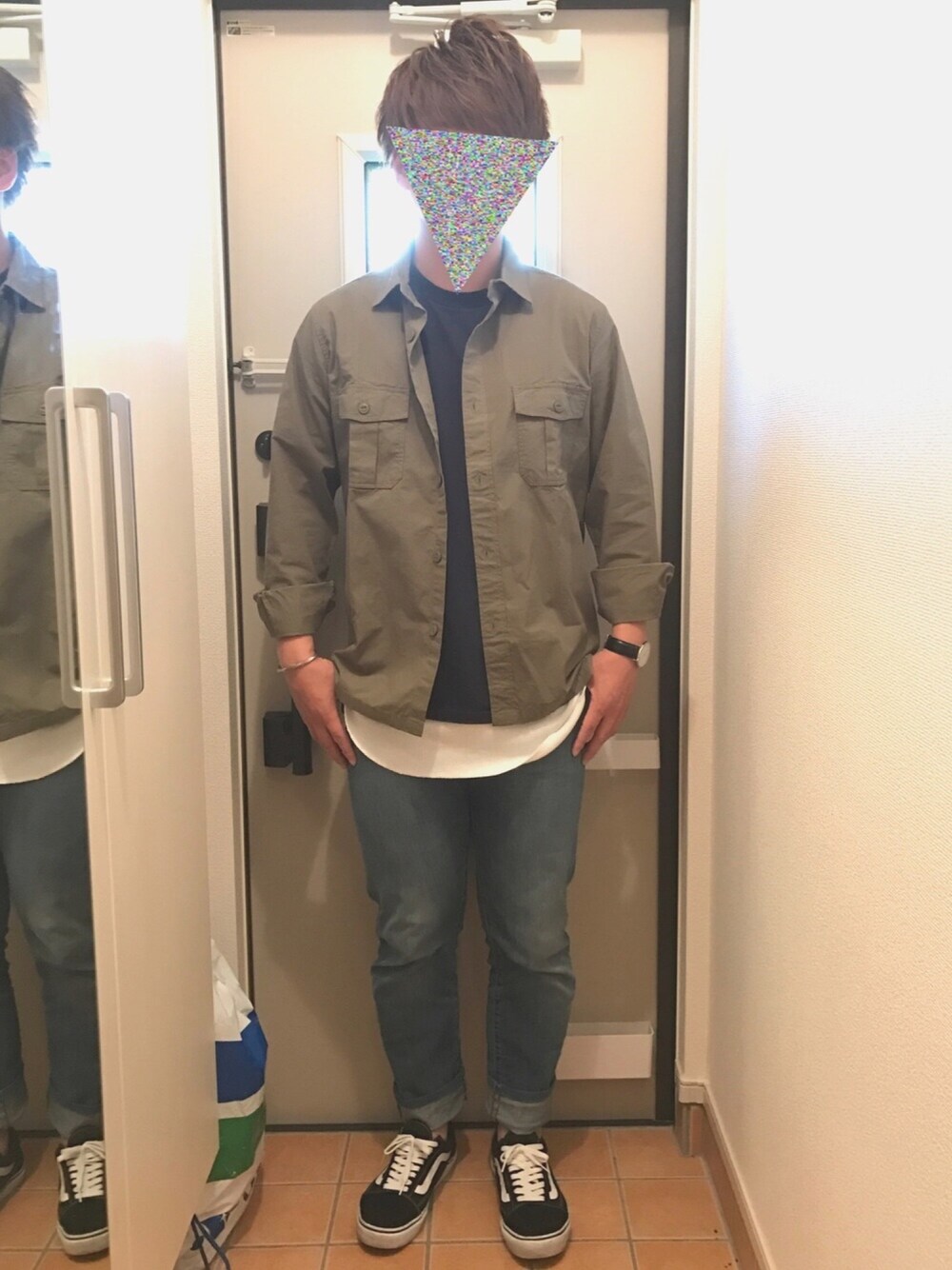 前回からの着回しで、春カジュアルなんだけど… 足短っ!!!!! 《サイズ》 シャツ [L] Tシャツ [L] ロングタンクトップ [L] デニム [32] スニーカー [27.5]