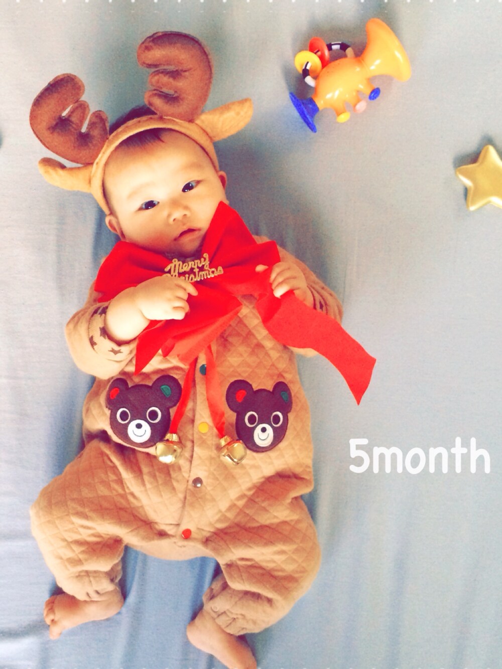 5ヶ月になりました☆ 離乳食を昨日から始めたけど、もっとくれもっとくれと泣くくらい大食いっぷりを発揮してました👶 その調子でどんどん大きくなって来年のクリスマスは一緒にケーキ食べようね❤️🍰