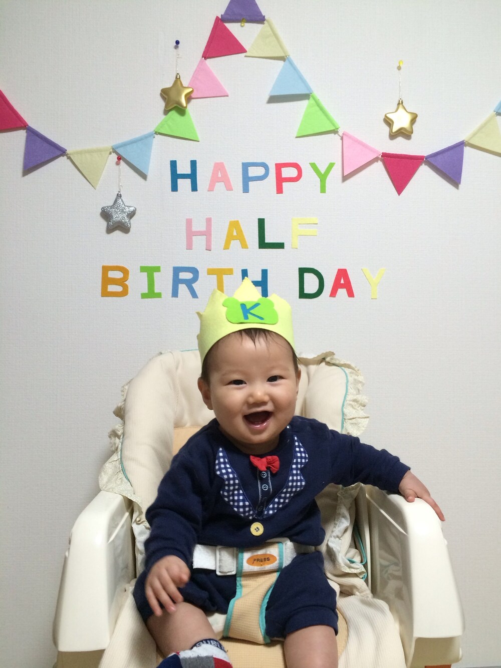 ハーフバースデー🎂❤️ おめでとう😊 あっという間の半年だったなあ〜✨ 成長が早くて嬉しい半面、そんなに早く大きくならなくていいようっていう焦る気持ちもあって💦 とにかくここまで元気に育ってくれたことに一番の感謝です♪ これからもその満面の笑顔をママにいっぱい見せてね〜☺️☺️☺️