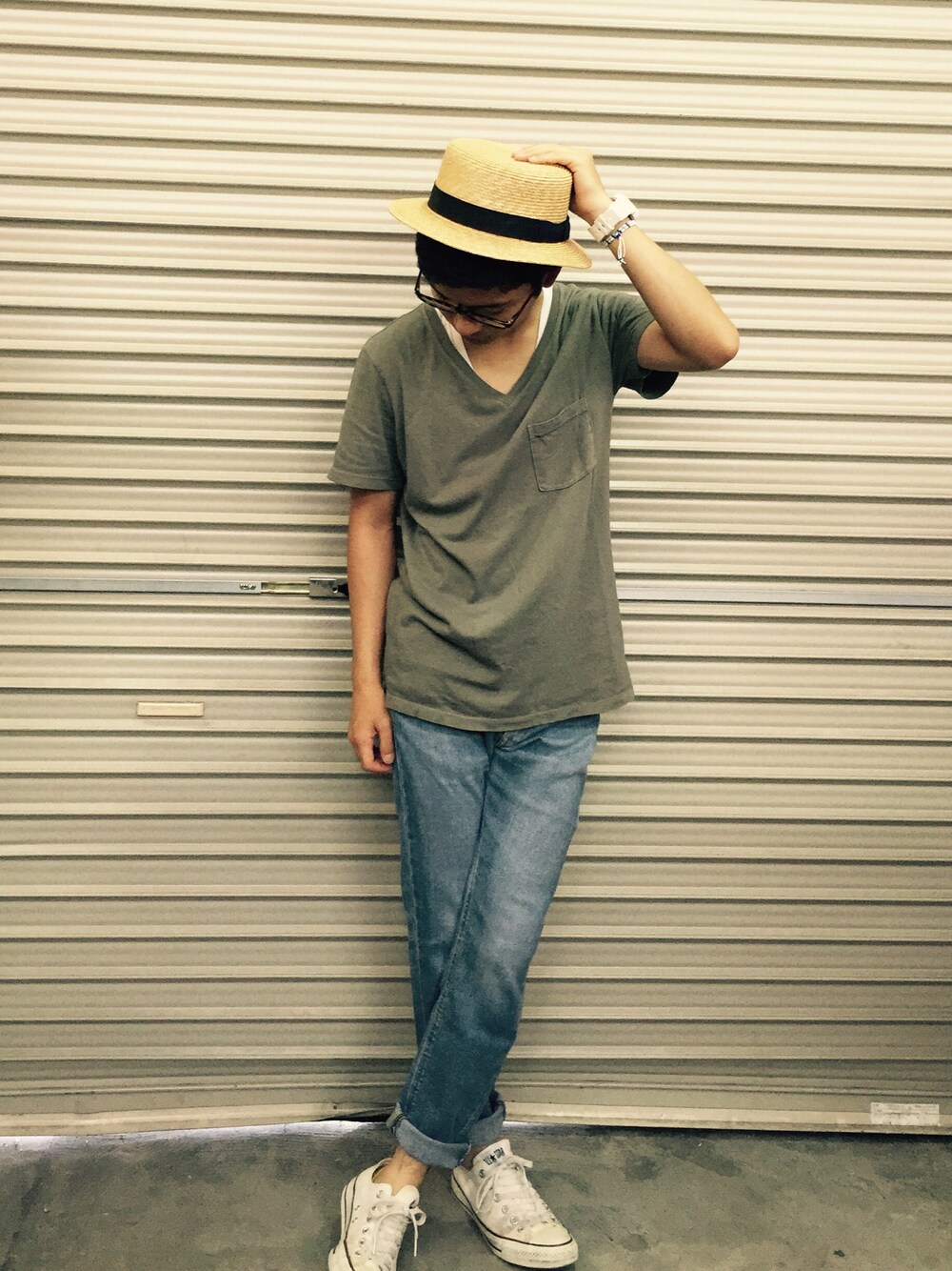 KEEXのTシャツ/カットソー「FREAK'S AMERICA/フリークスアメリカ ORGANIC COTTON V-NECK POCKET TEE 」を使ったコーディネート