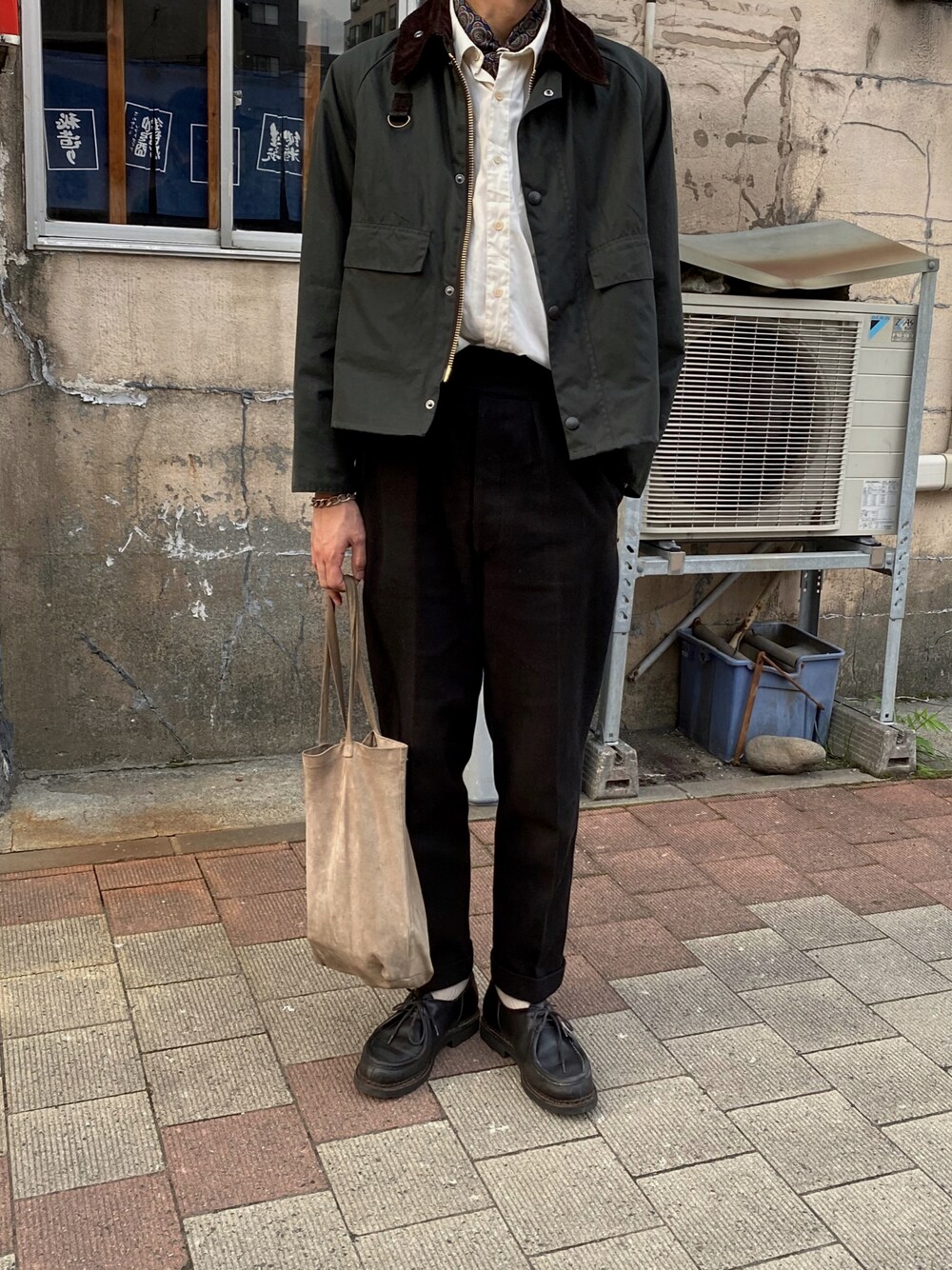 現行のspey jacketは短丈だけど着やすいサイズ感 ハイウエストのパンツでバランス取りたい