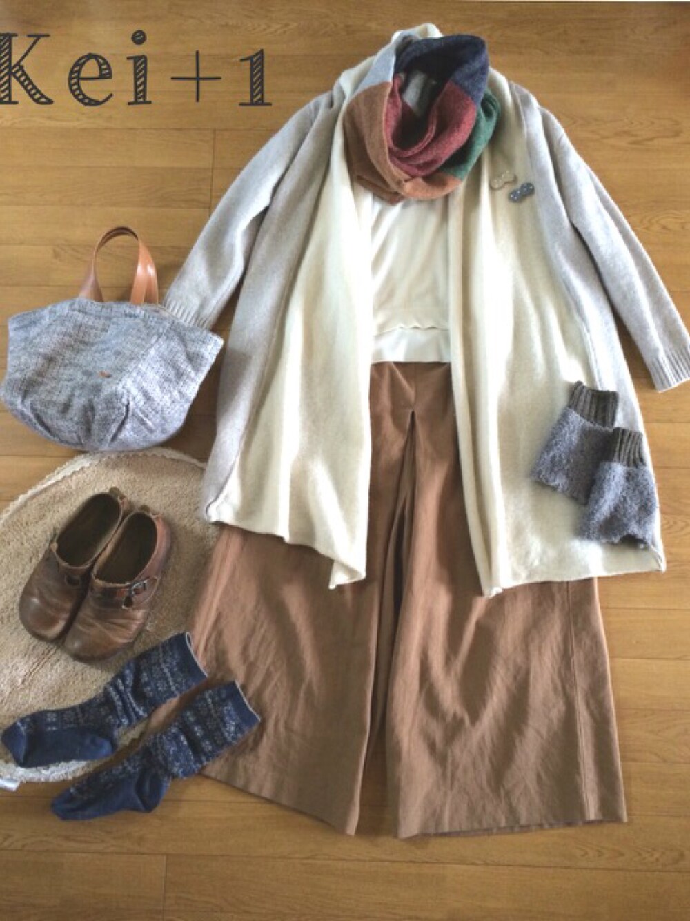 ハンドメイドコーデ。 ほっこりカラーのスヌードはアルパカ混ウールであったか。 ブローチはゴールドとパールブルーのレザーで。。 ニット風の起毛生地でふんわりほっこりバッグ。 ぜーんぶお気に入り。