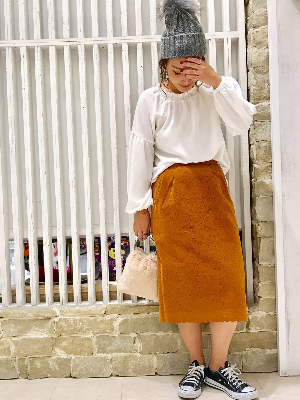 きれいめな格好の時は 小物はカジュアルにしたい派です💜 スカートとブラウスもレトロなきれいめ😌💕 おしゃれアイテムだなあ💜💜