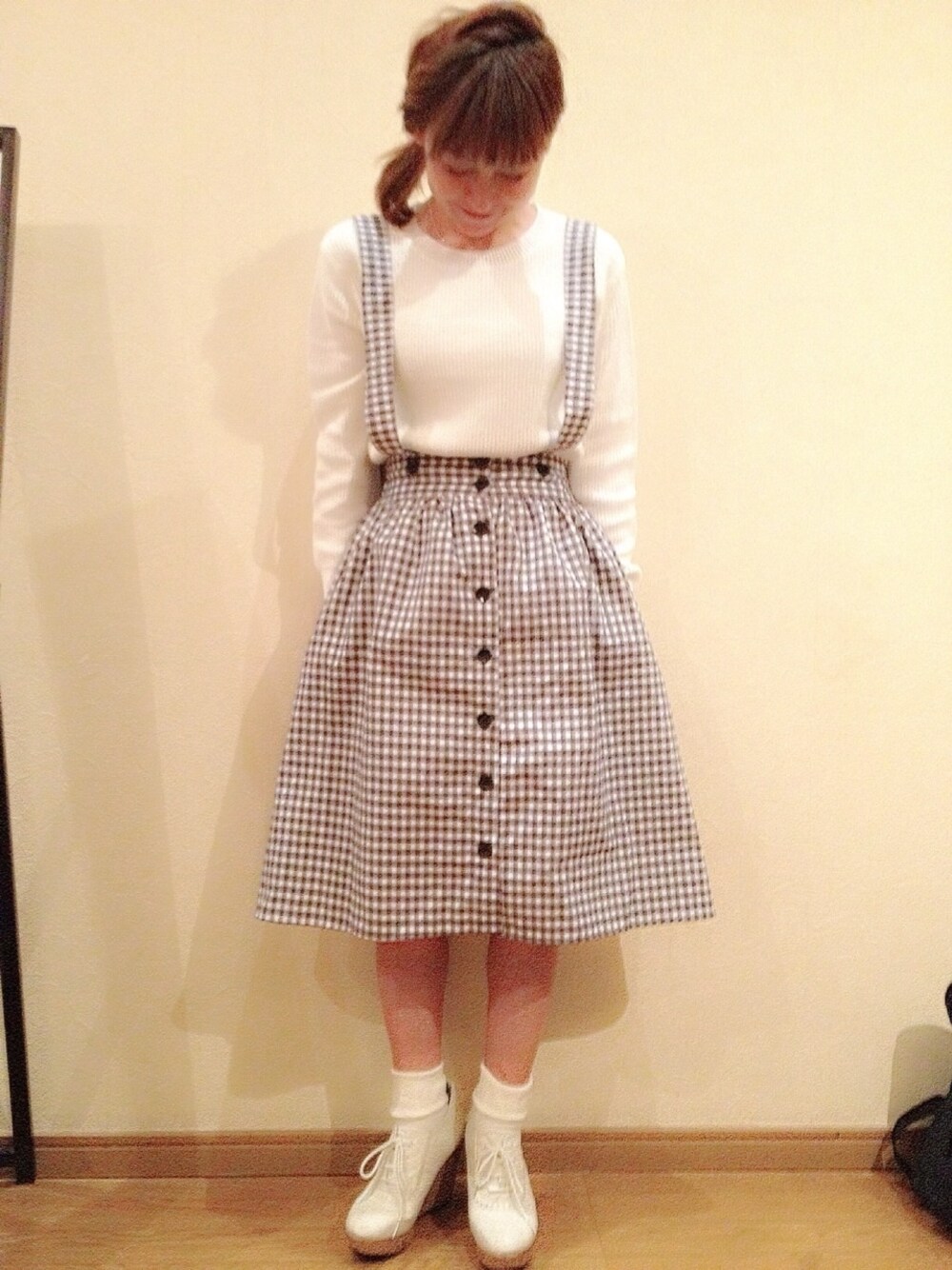 ニット:gu スカート:777 靴下:チュチュアンナ ギンガムチェックって好きだわー(。-_-。)
