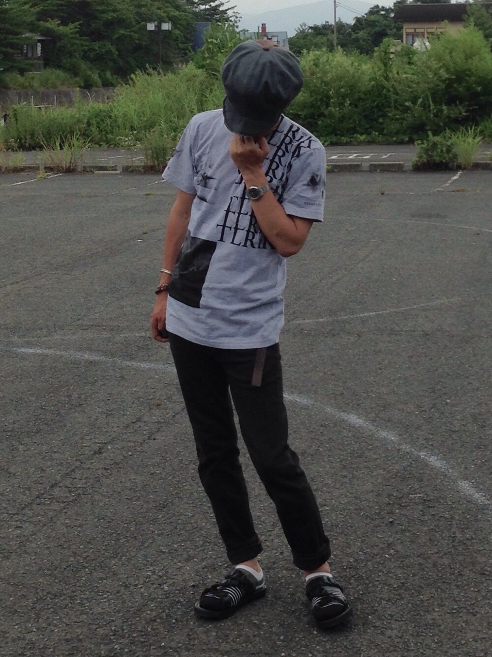 台風が来る影響か?天気があまり、良くなく、写真も暗くなりました😥ソロイストの初期型のTシャツを紹介したく、こんなコーデになりました。サンダル、一足しかないので、もう一足購入しようかと思います^_^コーデの幅が広がりますよね😃