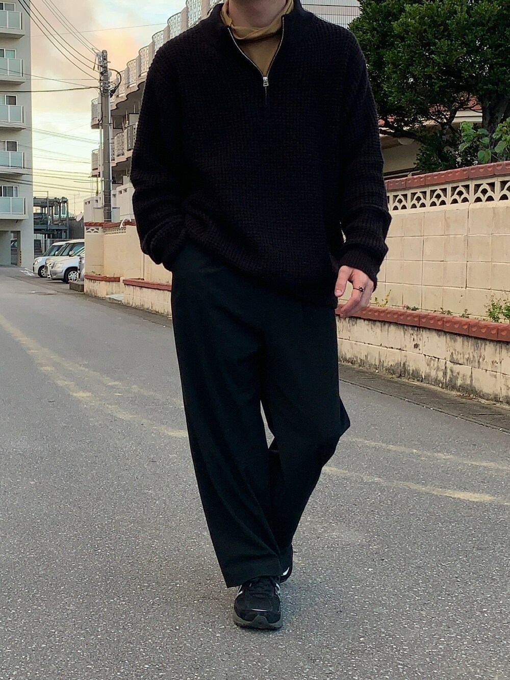 最近ハーフジップニットの出番多め✌️ でも、上下黒にしたのは久しぶりだな🤔