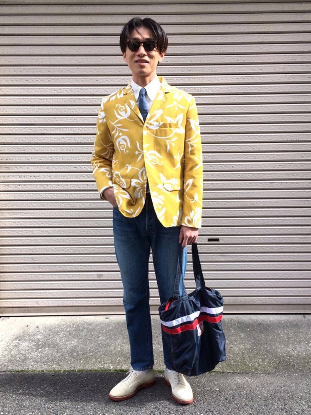 2019ssを先取りしました! スポーツコートにオックスBD、そこにシャンブレーのナロータイでタイドアップ、色落ちしたリーバイス501にホワイトバッグス! 春先はカジュアルなアイテムをトラッドに決め込みたい気分な僕です! バッグはナイロントートでチープ仕上げでいかがでしょう! これぞイエローラットの世界観ではないでしょうか! いながききお氏に敬意を!!!