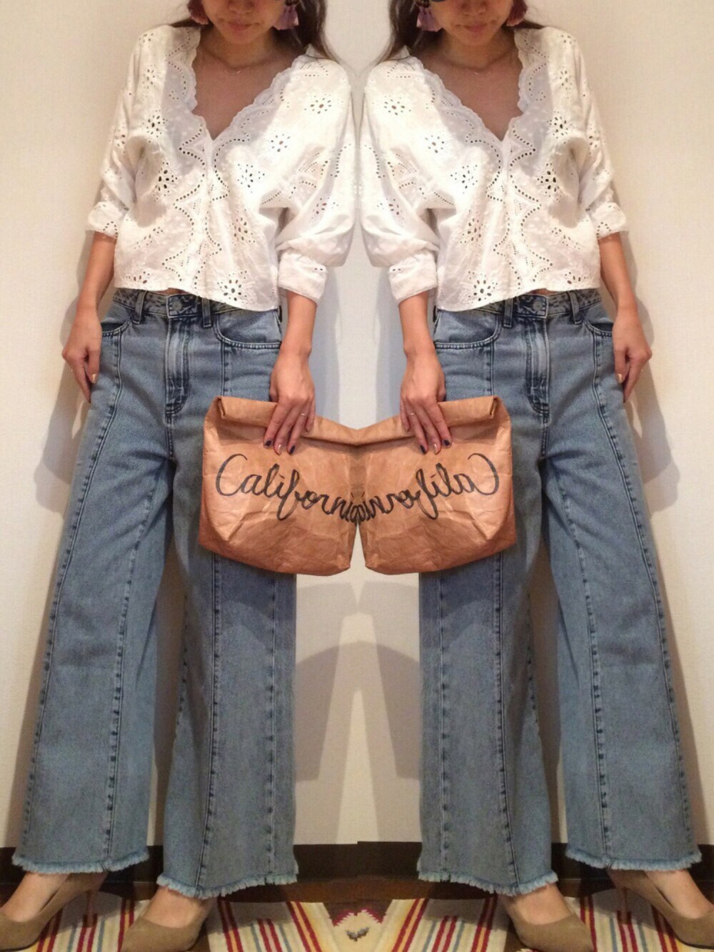 お気に入りのVネックブラウスと 最近買ったGUのデニム👯 GUデニムは初体験。 色違いしてもよさそうな履き心地💕 instaglam:click_f.a.b._handmade