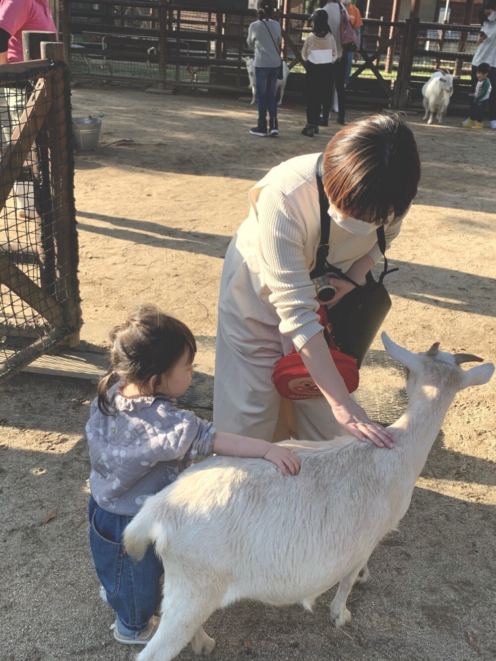 娘っ子2歳3ヶ月。 はじめてヤギにふれる。