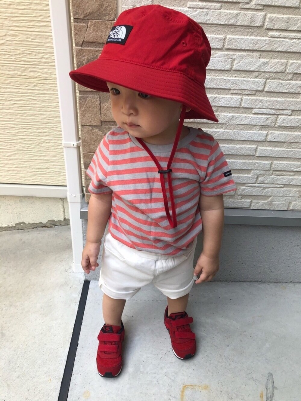 本日は撮り溜めでーす😃 ノースの赤のバケハお仲間さんのはやとくんがイロチでかぶっていて凄く可愛くて買っちゃいました👍 赤は差し色として使えて可愛くて気に入ってます❤️ トッキーに貰ったナイキのスニーカーもバッチリ👌 今回は赤コーデ❤️ そして夏のワントーンコーデにものっかってみました😊 これってワントーンコーデで大丈夫かな⁉️ワントーンコーデイマイチわからん😅 ちなみに今日のけいたんは 私と2人で家でまったりーー💕 最近服を着るのが大嫌いなので一日中オムツだけの生活しております😃