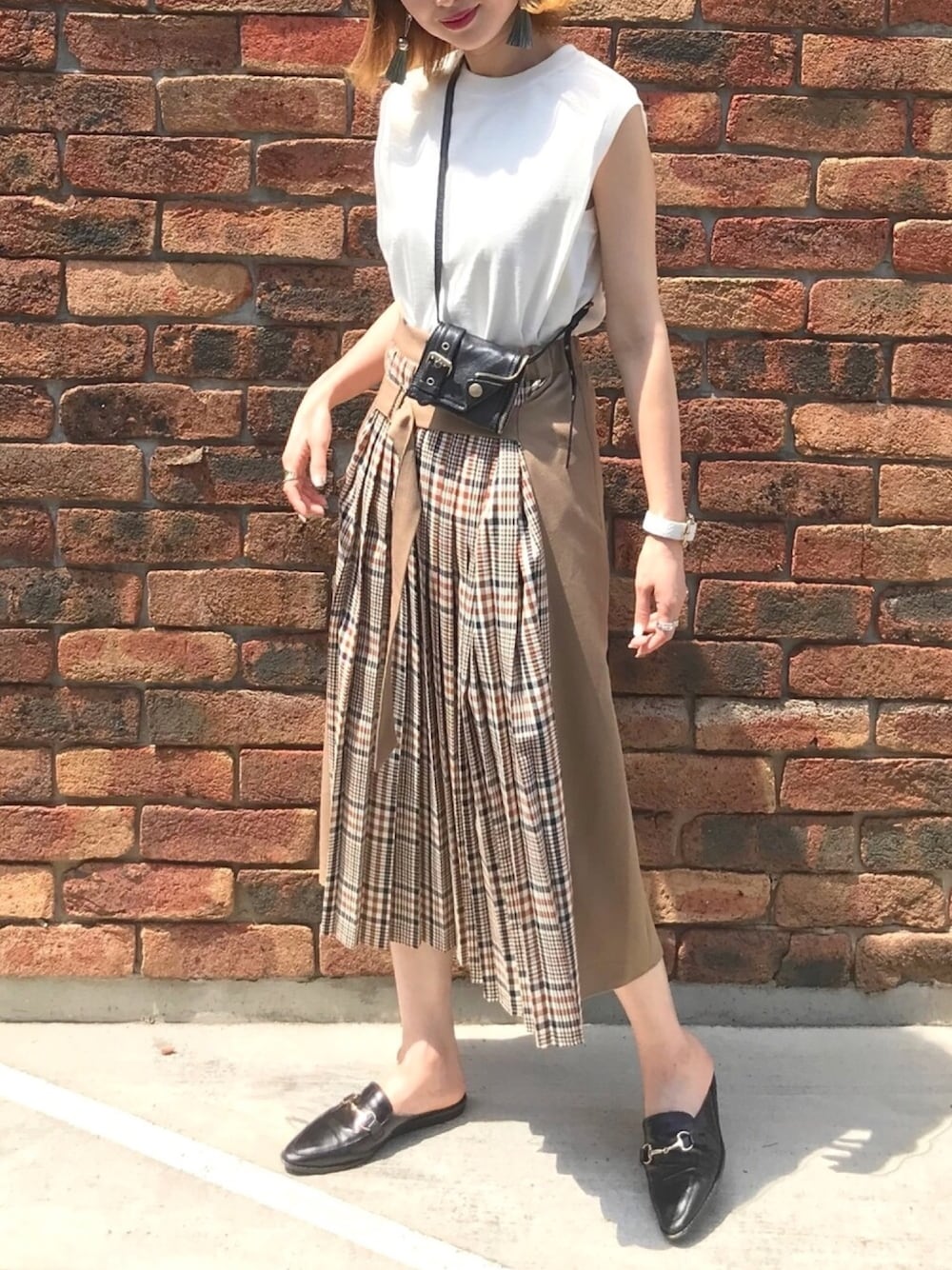 ZOZOノースリーブに 映えるチェックスカート★ 夏にこんなチェックも 新鮮で良いかなと思いました。 ブラックのレザーアイテムを合わせて 大人っぽい雰囲気に。 ノースリーブはしっかり肉厚で 使いやすいアイテム♪ これからの季節 間違いなくたくさん着ます❣️