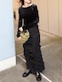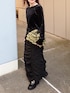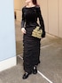 全身ブラックコーデに 縦長ラインシルエット。 PR フリルバッグ。 派手かわなアイテムで、 普段使いにもパーティにも◎ 色みをおさえたクールなスタイルに 合わせるのが好みです。 肩かけにもできて便利です! Instagram ing.cream