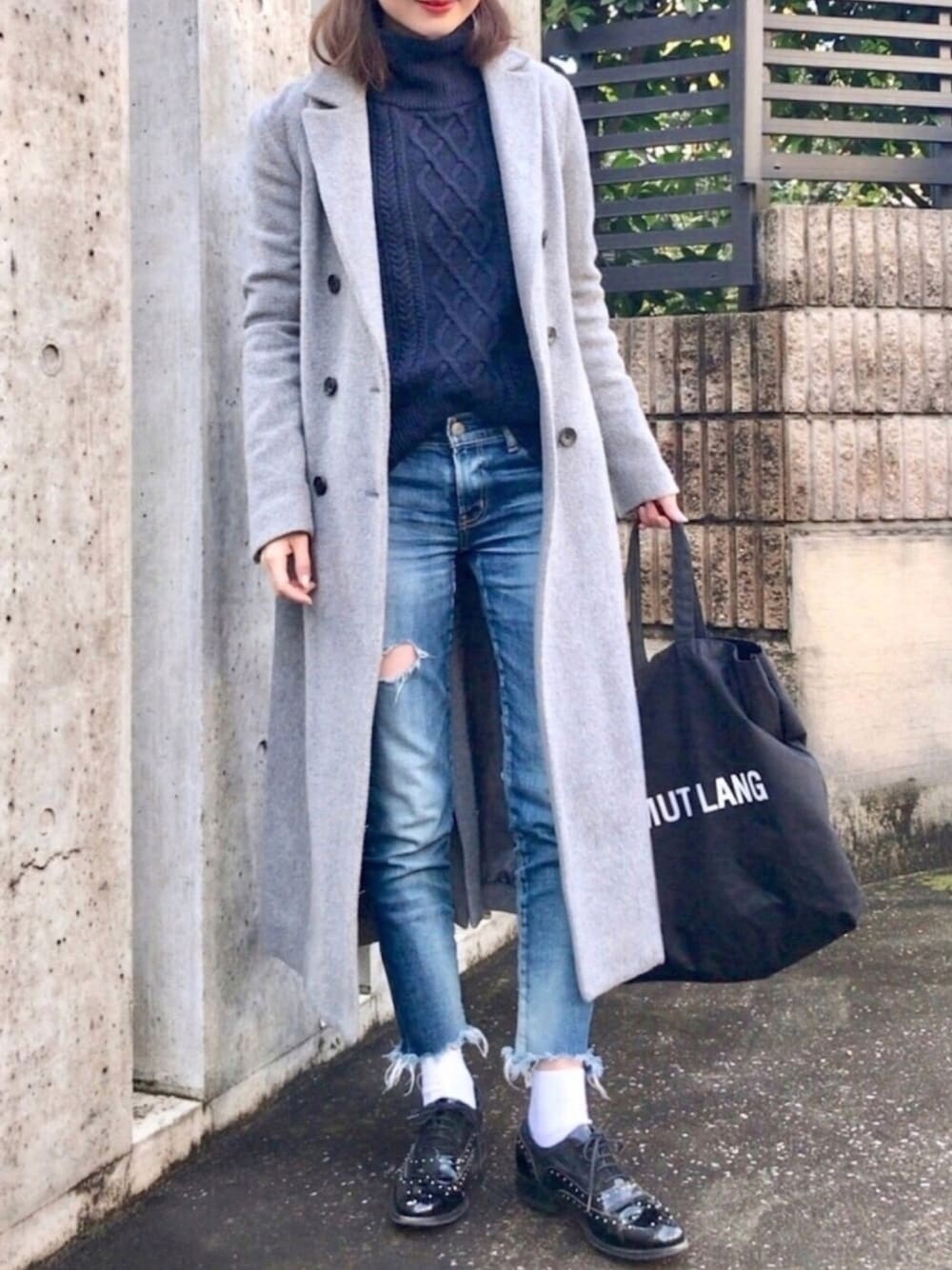 ネイビーニットにダメージデニムで さわやかな色合いにしました〜❣️ ニットは去年からたくさん着てます♪ この組み合わせ好きなのですが、 今の季節は ダメージの穴が地味に寒い。。⛄️ 穴のないデニムが欲しいw