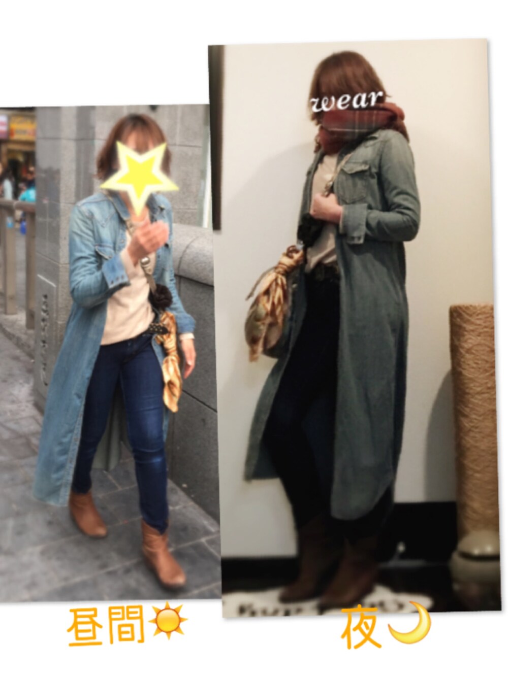こんばんは〜🌙 いいね❤️セーブ☆フォロー☆コメントありがとうございます🙇✨ 見にきてくださって嬉しいです🙌😆💕 今日は大阪旅行2日目🎵着回しコーデ🤗 デニムワンピをアウターとして持って行ったので、今日のコーデもデニムワンピが登場😁✨ インナーを変えて✨昨日はニットワンピだったので、今日はデニムパンツ👖夜はちょっと寒かったのでマフラーをして😋
