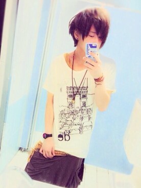 「夕立に笑う」というバンドで曲を書いて歌ってます。 モード、カジュアル、エスニックを混ぜて着ます。アクセサリーはハンドメイドの物がメイン。